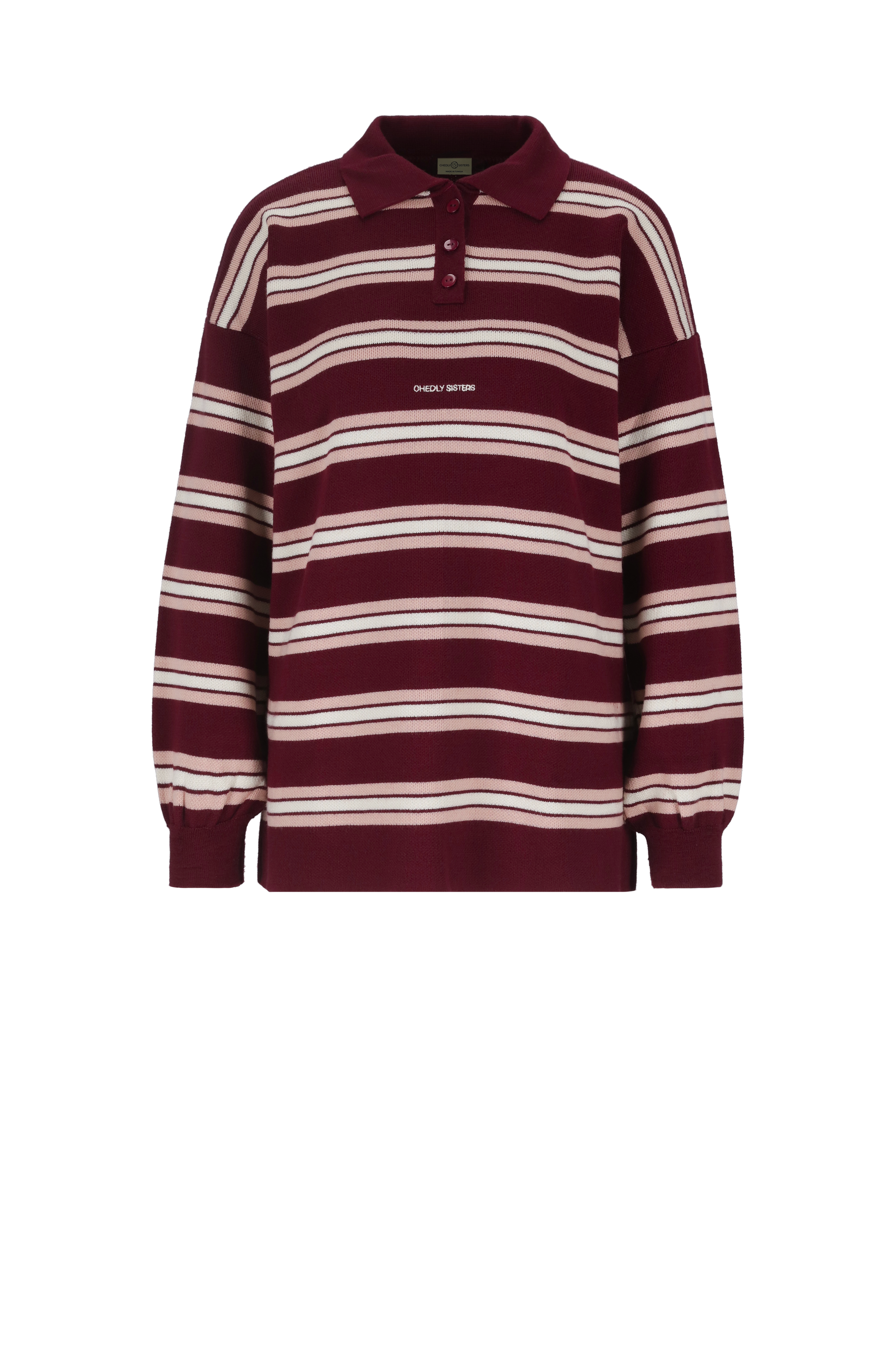 Retro Striped Polo Knit (Burgundy X Pink)